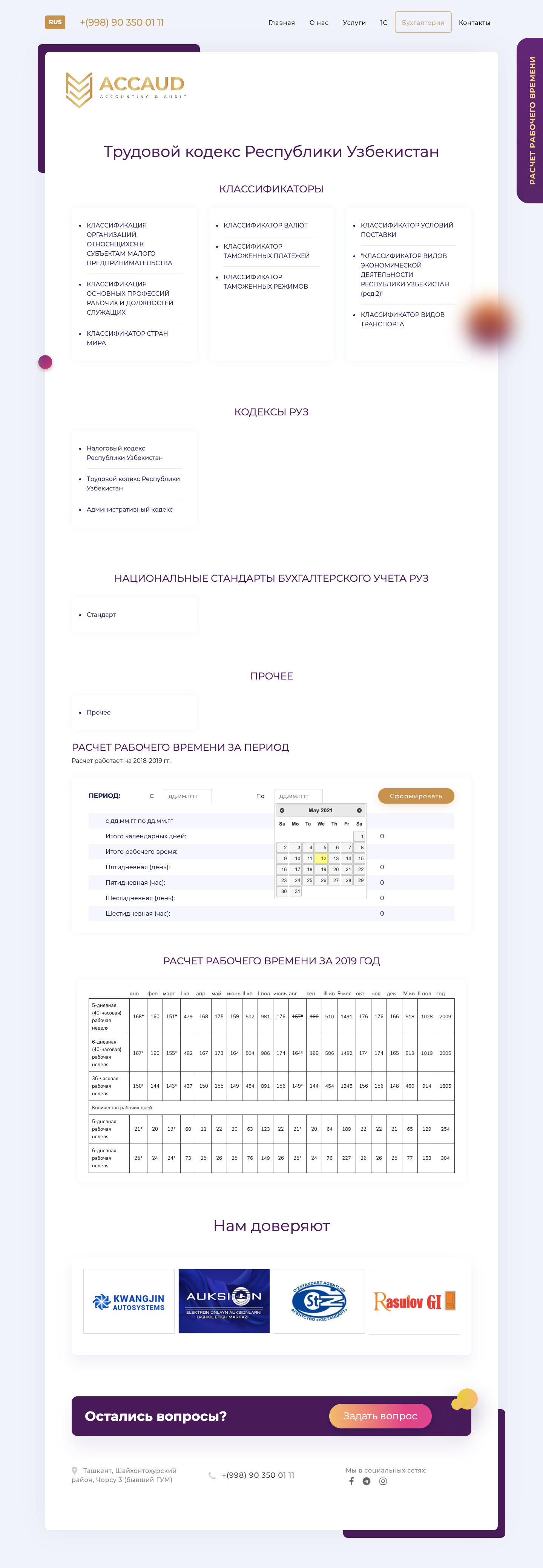 Было решено сделать посадочную страницу, с описанием приемуществ компании. Под реестр классификаторов и кодексов сделан отдельный раздел, с калькулятором и фильтрацией.