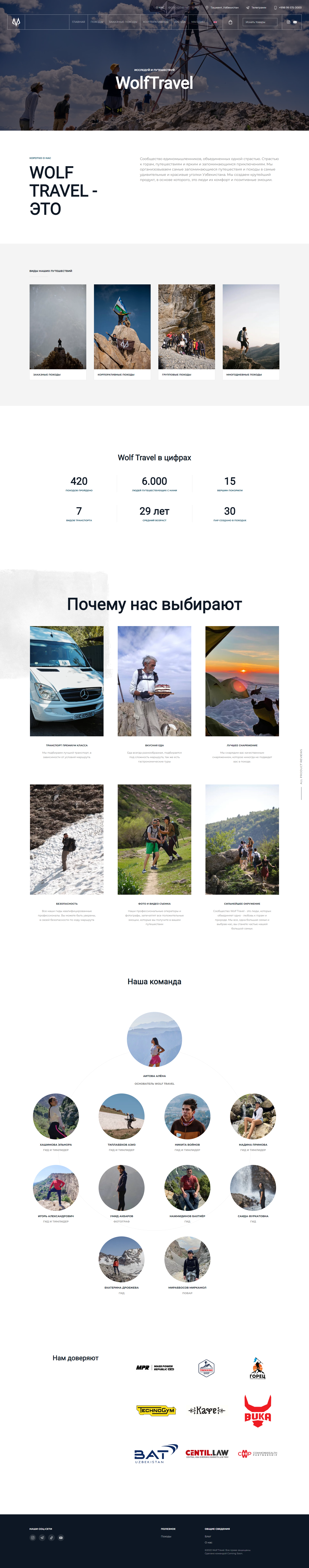 WolfTravel — премиальная туристическая компания, предлагающая эксклюзивные туры и походы по самым интересным маршрутам. Основная цель проекта — создать сайт, который отразит уникальность бренда и предложений компании, привлекая аудиторию высокого класса и увеличивая количество заявок через онлайн-каналы.