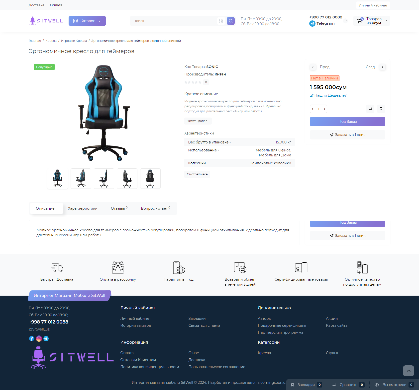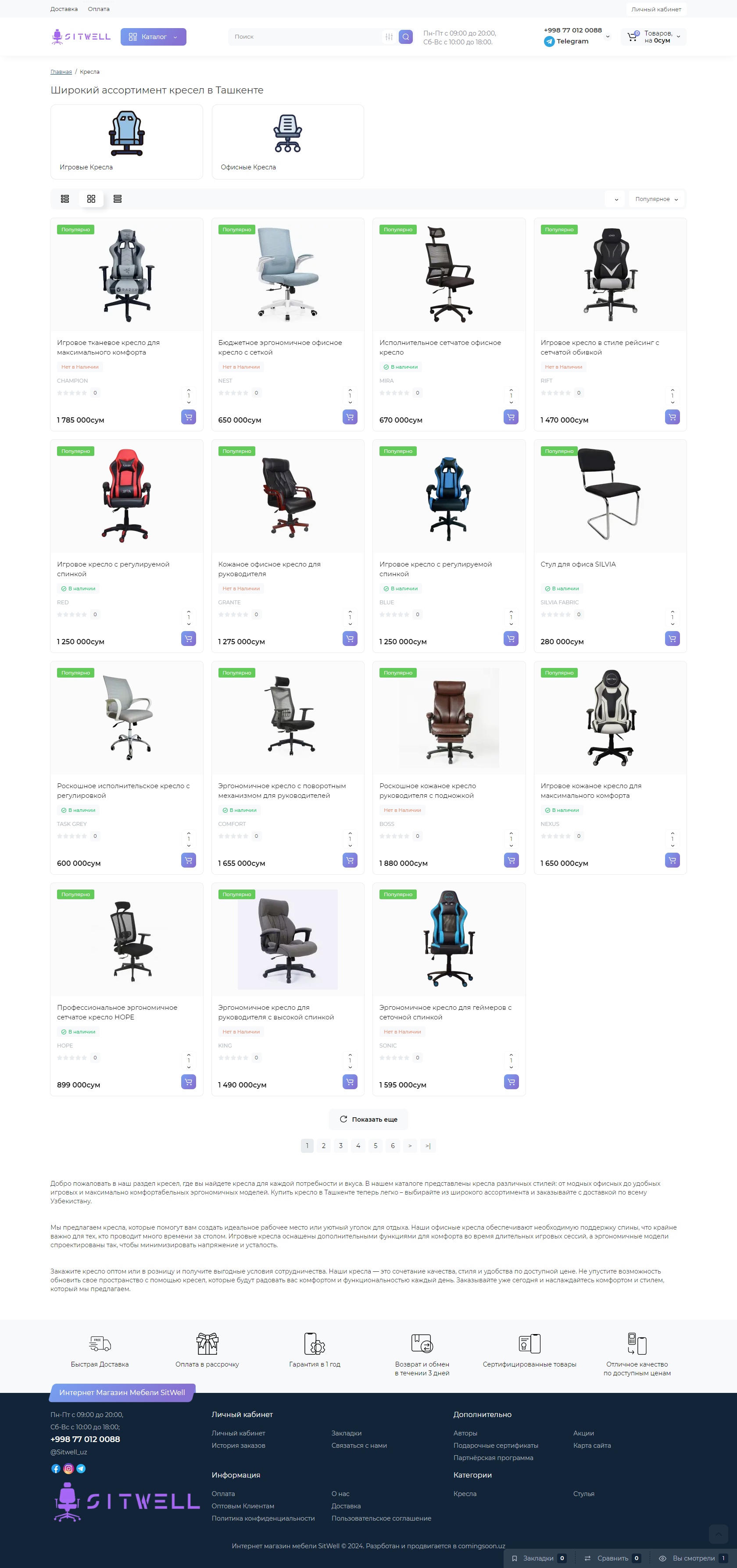 SitWell — это интернет-магазин офисной мебели, специализирующийся на продаже кресел и офисных стульев. Основная задача проекта заключалась в создании удобного интернет-магазина, который позволил бы компании расширить свою клиентскую базу за счет розничных покупателей, а также привлекать больше оптовых клиентов.
